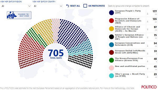 Potrivit sondajelor de opinie agregate de Politico, atât Partidul Popular European cât și grupul S&D vor pierde anul acesta mandate față de precedentele alegeri – popularii 48, socialiștii 40.