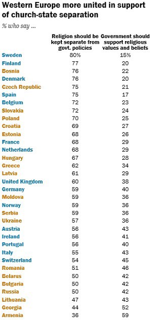 Românii se numără printre popoarele cu o pondere mare a celor care cred că statul trebuie să sprijine valorile creștine – doar 51% cred că Biserica trebuie să nu influențeze în niciun fel politicile guvernamentale.