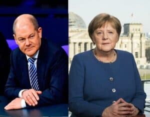 Angela Merkel, cancelarul german și deja lider istoric al partidului creștin-democraților (CDU), și ministrul german de Finanțe, Olaf Scholz, liderul social democraților (SPD), s-au văzut
