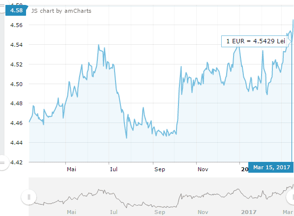 The National Bank of Romania (BNR) announced an average rate of 4.5872 lei on Thursday, following the sharp depreciation in the first part of the
